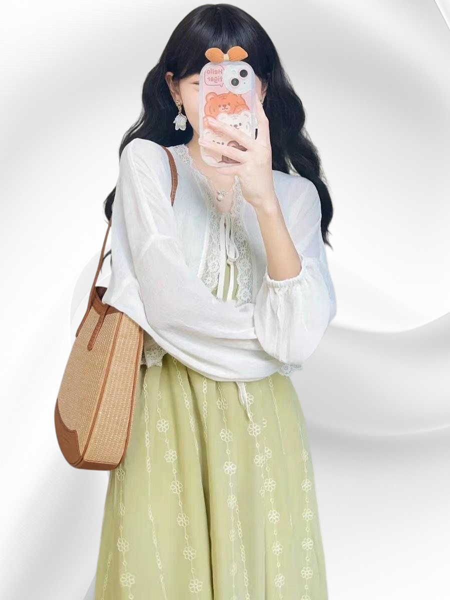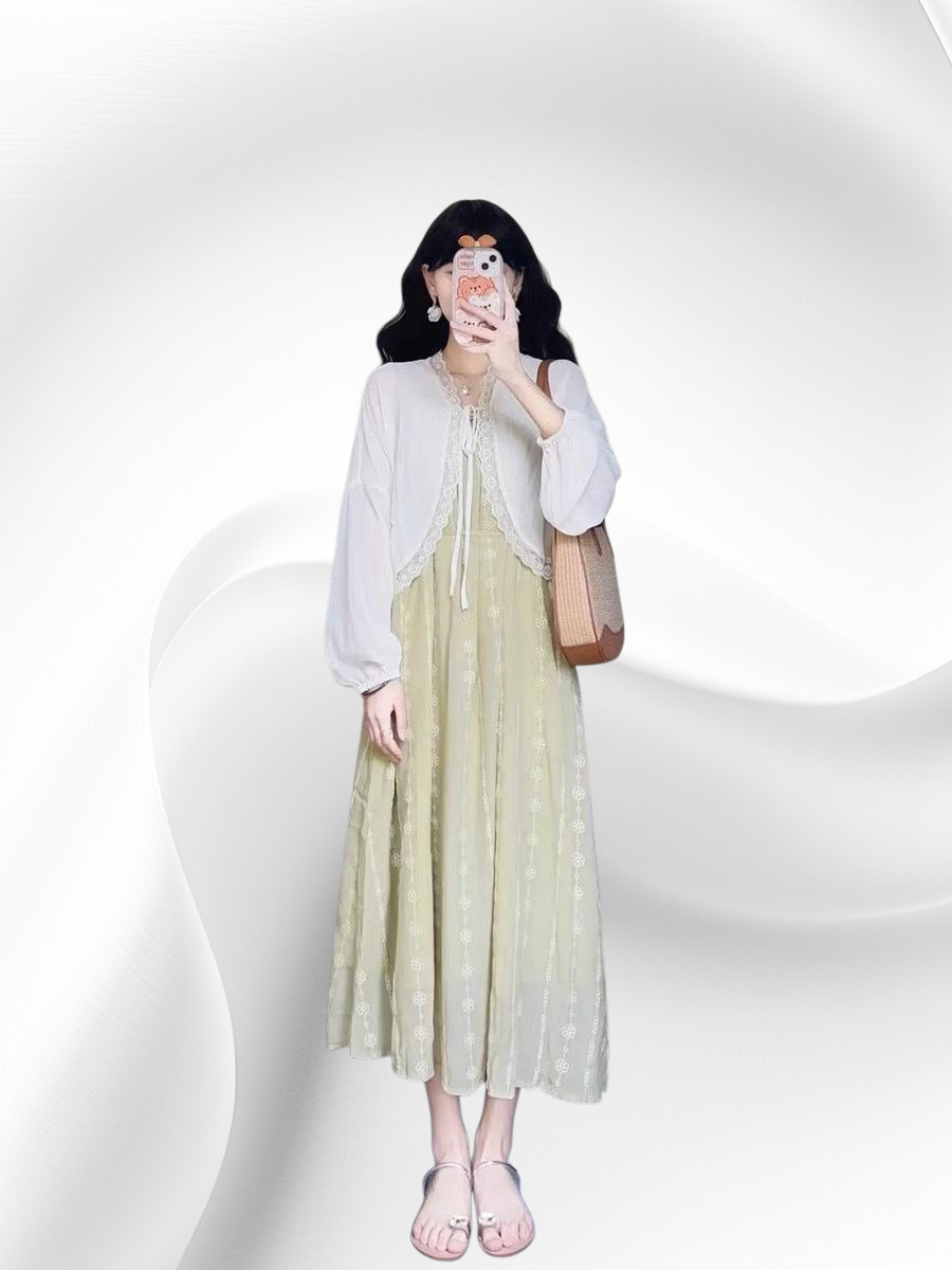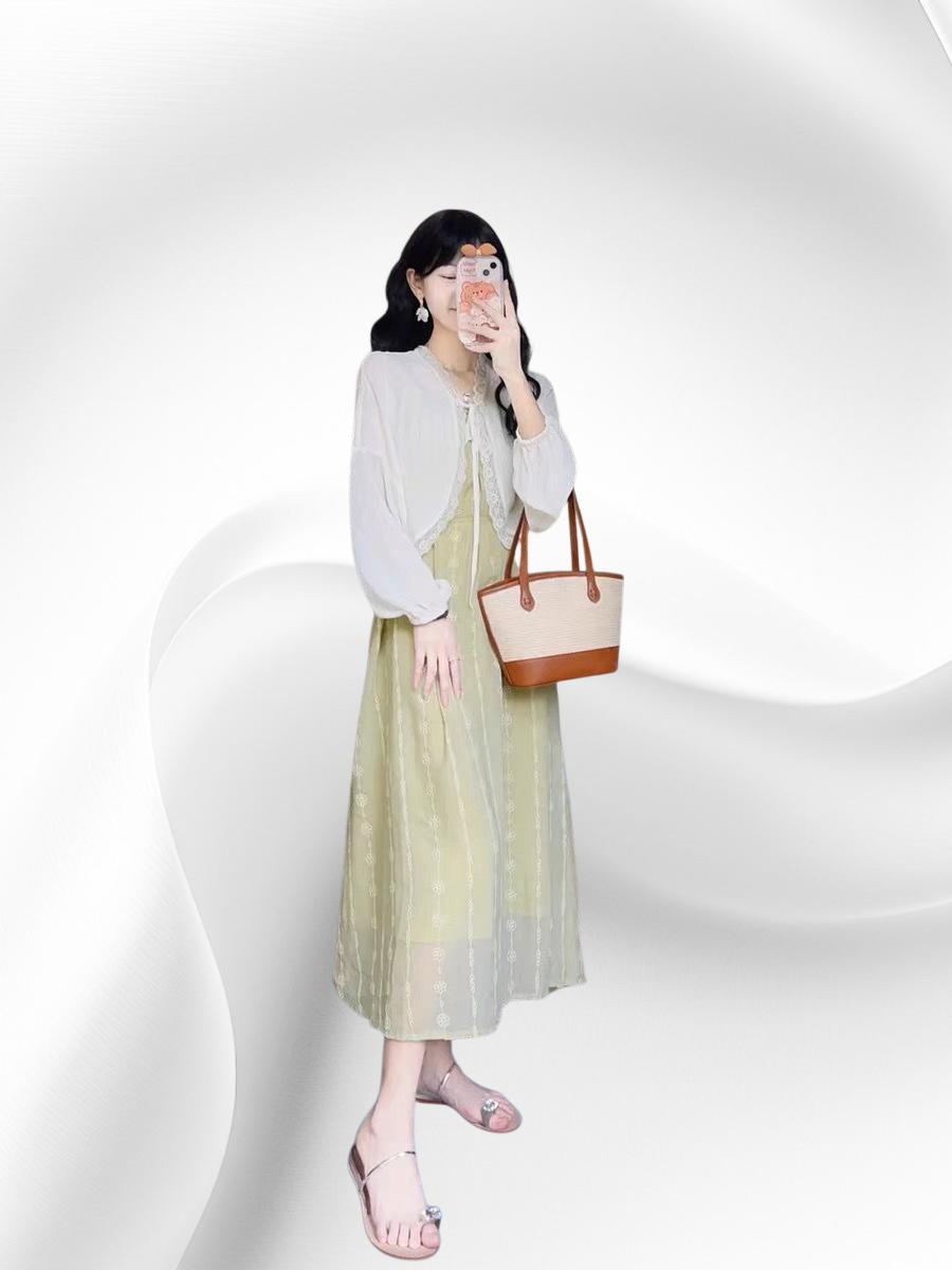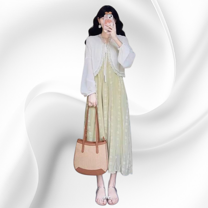 색상:흰색 숄 & 초록색 슬립 원피스(세트)