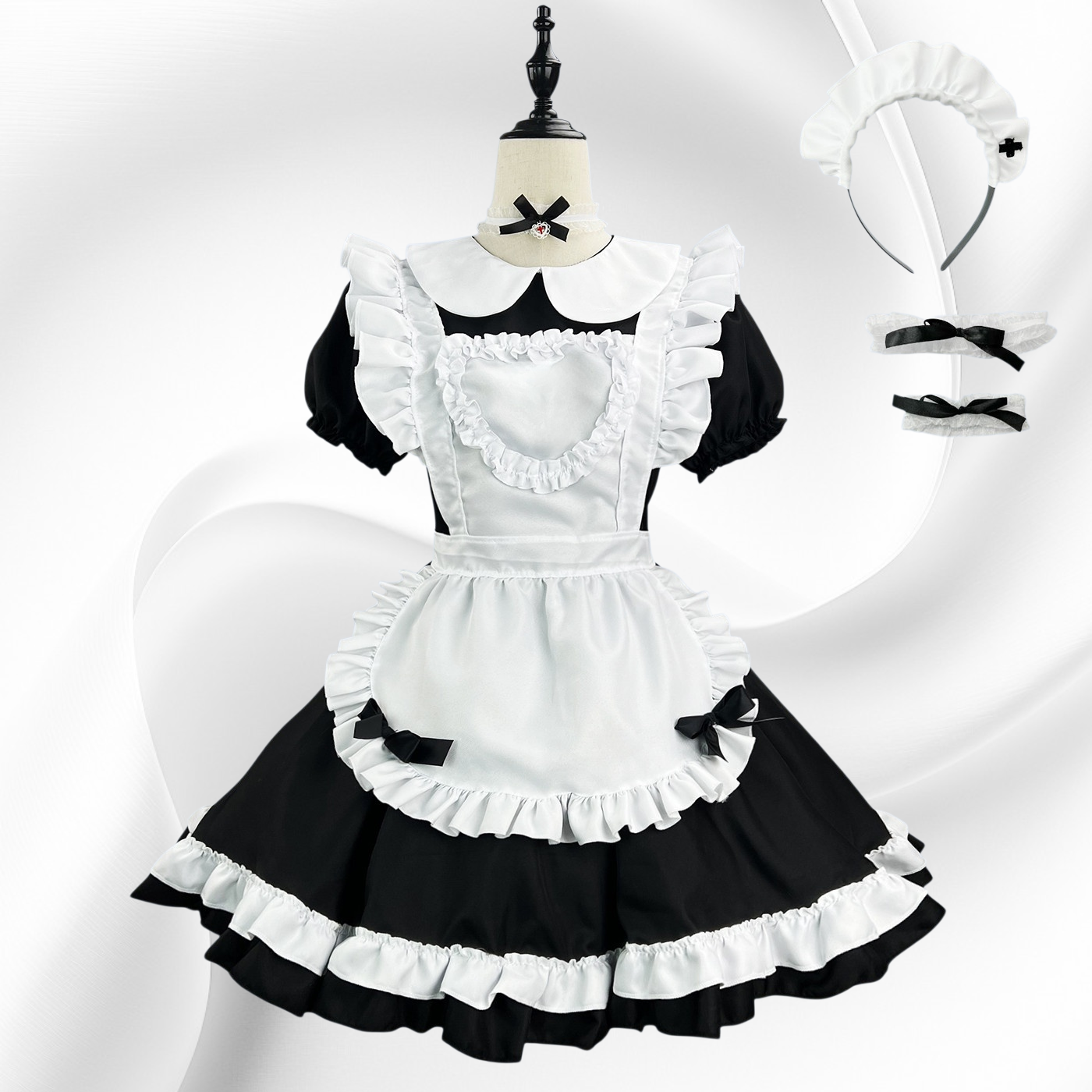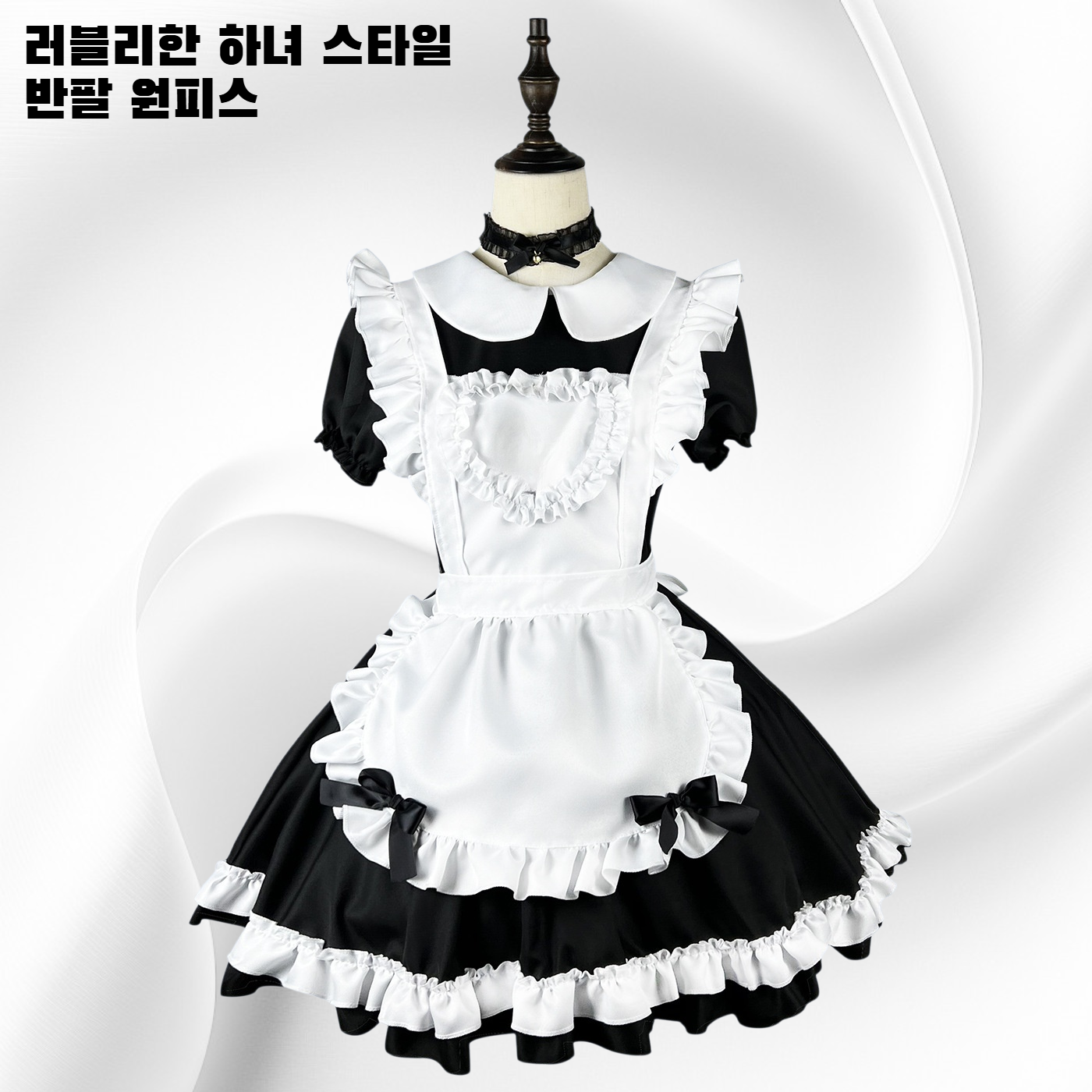 하녀 스타일 반팔 러블리 원피스